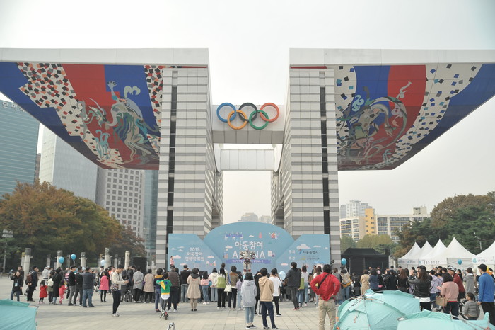 | ▲ 올림픽 공원 내 평화의 광장에서 2019 아동참여 정책박람회 ‘아동참여 ARENA’가 진행되는 모습.(사진제공=굿네이버스 ) |
