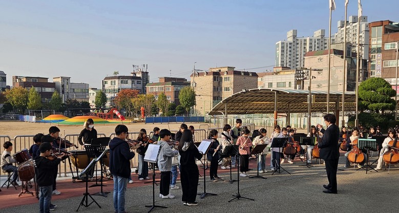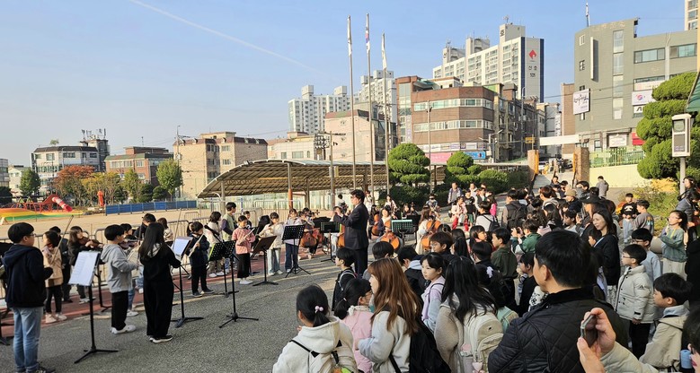 가을 아침, K-팝 선율로 깨어나다!! 시흥신일초 오케스트라, 등굣길 특별공연