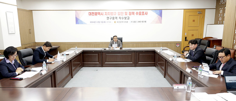 [대전 세계타임즈=이채봉 기자] 대전시의회 「더 좋은 조례 연구회」(회장 김영삼 의원)는 5일 대전시의회 공감실에서 ‘대전광역시 자치법규 입안 및 정책 수요조사’ 연구용역에 대한 착수보고회를 열었다.
