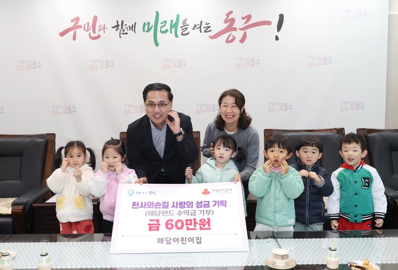 박희조 동구청장은 “행사 수익금을 지역사회를 위해 기탁해 주신 해담어린이집 가족들께 진심으로 감사드린다”며 “전달된 성금은 도움이 필요한 취약계층을 위해 소중히 사용하겠다”고 전했다.