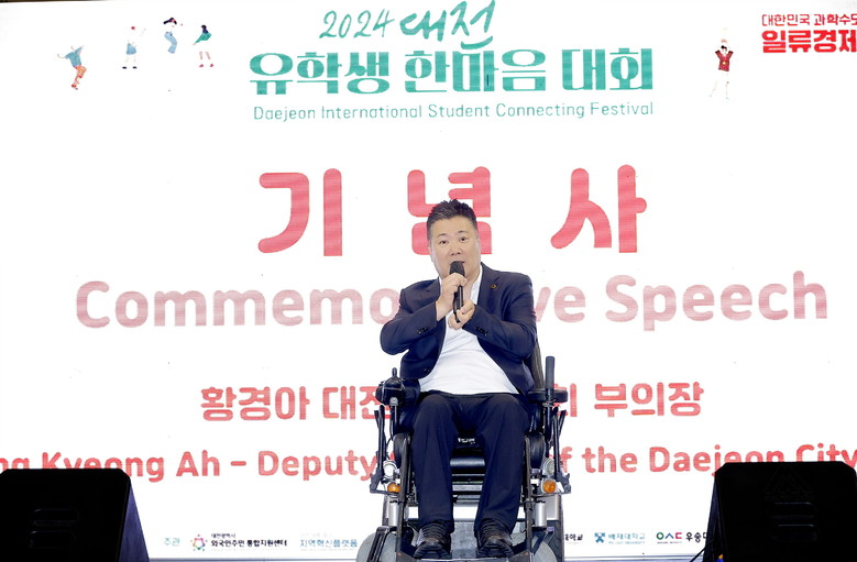 [세계타임즈=이채봉 기자] 대전시의회 황경아 부의장은 2일 KT 대전인재개발원 실내체육관에서 열린 ‘2024 제7회 대전 유학생 한마음 대회’를 찾아 “오늘 대회는 각국에서 온 유학생들이 서로의 문화를 배우고 즐거운 시간을 나눌 수 있는 소중한 기회”라며, “소통과 교류를 통해 서로의 세계관을 확장하고 함께 성장할 수 있는 뜻깊은 시간 되기를 바란다”고 말했다.