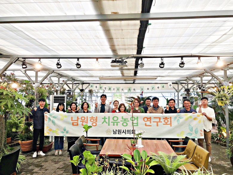 남원시의회 의원연구단체‘남원형 치유농업연구회’는 남원이 가진 다양한 농업 자원을 치유와 연결하여 남원시민의 건강회복 및 증진 도모와 치유농업 자원을 발굴하는 것을 목표로 2023년 3월 16일 농업기술센터 회의실에서 발족했다. 해당 연구단체는 김길수 의원을 대표의원으로 손중열, 오창숙, 이기열 의원과 농업기술센터 치유농업 관계자들 및 민간 치유농업연구모임 회원들이 함께 활동한다. 3월 16일 발족식 및 간담회를 개최한 이후 5월 1일 치유농업 관련 우수기관인 부안‘포레도’를 벤치마킹했다. 부안‘포레도’는 미세먼지 실시간 모니터링 시스템을 구축한 청정 온실체험학습장과 정원카페를 비롯한 치유센터를 함께 운영하는 전라북도 유일의 최첨단 치유농원이다. 이날‘남원형 치유농업연구회’는 옴니핏 마인드케어, 반려식물 만들기 등 다양한 체험을 하며 남원의 치유농업에 접목하거나 새로운 방향을 찾아 진정한 남원형 치유농업자원을 발굴하는데 기여하도록 하겠다며 각오를 다졌다.