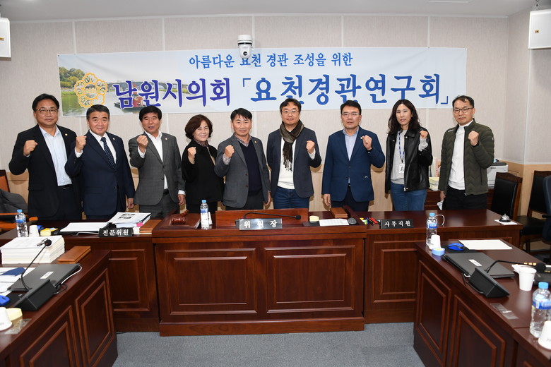남원시의회 의원연구단체‘요천 경관 연구회’는 남원의 얼굴이자 대표 경관인 남원 요천의 난개발을 막고 바람직하고 아름다운 요천 경관을 위한 조성방향 정립을 목표로 2022년 8월 4일 시의회 3층 경제산업위원회 회의실에서 연구회를 발족하고 운영일정 및 연구방안 논의를 위한 첫 회의를 진행했다. 해당 단체는 염봉섭 대표의원을 중심으로 강인식, 김영태, 김한수, 오창숙, 윤지홍 의원과 정책지원관들이 함께 활동하며 요천 제방길의 편의성을 높이고 요천의 자연 매력을 흠뻑 느낄 수 있는‘천변로 논스톱 산책로’개발을 핵심 연구 과제로 선정하여 지역 및 국내의 대표적 전문가, 시민과 함께 11월까지 연구 활동을 진행했다. 8월 4일 발족식 및 간담회를 시작으로 10월 14일 전문가를 초청하여 미학과 풍수지리에 대한 특강과 토론회를 개최했고 11월 14일 현장견학과 함께 공공디자인 전문가를 초청하여 특강과 연구결과 보고를 받았으며 구례 서시천변의 논스탑 통행데크를 견학했다. 이를 토대로‘요천 경관 연구회’는 도보 편의성을 높이고 횡단보도 교통사고를 줄일 수 있어 시민의 건강과 힐링 활동을 활성화할 수 있는‘천변로 논스톱 산책로’를 집행부에 요청했고 현재 ‘친수공간 조성사업’에 반영되어 추진중에 있다.