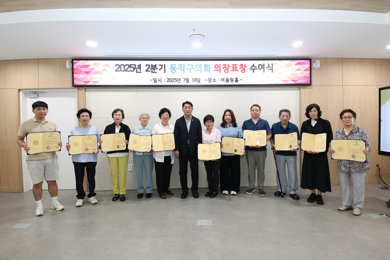 정재천 의장은 “보이지 않는 곳에서 묵묵히 헌신해 오신 여러분들의 노력 덕분에 더 살기 좋은 동작구가 만들어진 것 같다”며, “동작구의회도 구민들의 복리증진과 지역발전을 위해 의정활동에 더욱 매진하겠다”고 감사의 뜻을 전했다.