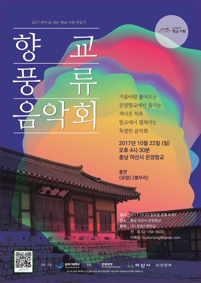 ‘향교 풍류 음악회’는 교육과 함께 지역문화의 중심으로 마을 공동체의 자존을 상징했던 향교의 기능을 현대적으로 활용하고 발전시키는 데 초점을 맞췄다. 더불어 문화재로만 남아 있는 것이 아니라 시민에게 열린 공간으로서의 향교의 이미지를 제고하고, 문화재 안에서 문화활동을 향유할 수 있는 차별화된 프로그램을 제공하고자 기획 됐다.