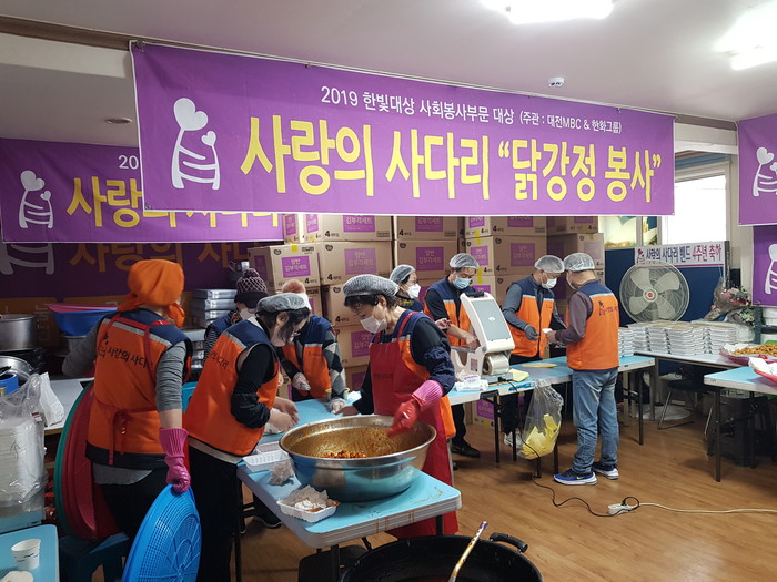 대전장애인주간보호시설협회 유근선 회장은 “오늘 사랑의 사다리 밴드 봉사단체에서 맛있는 닭강정을 지원해 주어서 큰 힘과 위안이 된다.”면서 감사함을 전했다.
