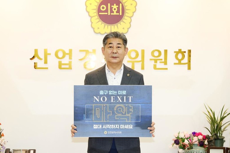 [인천 세계타임즈=심하린 기자] 인천광역시의회 정해권(국·연수1) 산업경제위원장이 사회적으로 많은 문제가 발생하고 있는 불법마약류 근절을 위해 ‘NO EXIT’ 캠페인에 동참했다.