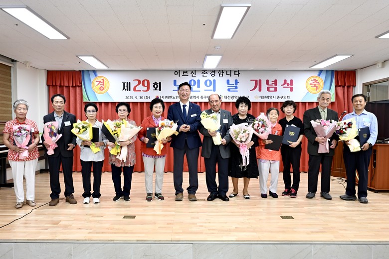 이번 기념식은 어르신들에게 공경과 감사의 마음을 되새기기 위해 지역 내 어르신 250여 명을 초청한 가운데, 김제선 중구청장, 오은규 중구의회의장, 이인상 중구지회장 등 노인회 관계자 및 수상자 가족이 함께했다.