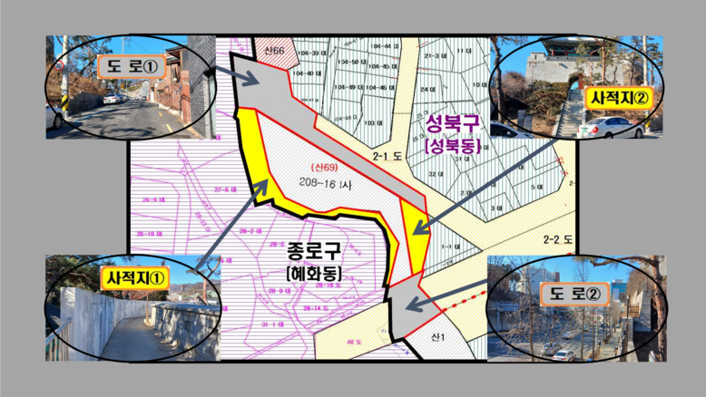 또한 구는 서울시 지적보존문서 시스템에서 구 보관 폐쇄 지적도와 종로구 폐쇄 지적도를 내려받아 추가 검토한 결과, 사적지는 최초 지적공부 작성 당시부터 현재까지 미등록 상태였고, 인접 현황도로는 과거 신규등록 과정에서 경계와 면적이 잘못 결정된 사실을 최종 확인했다.
