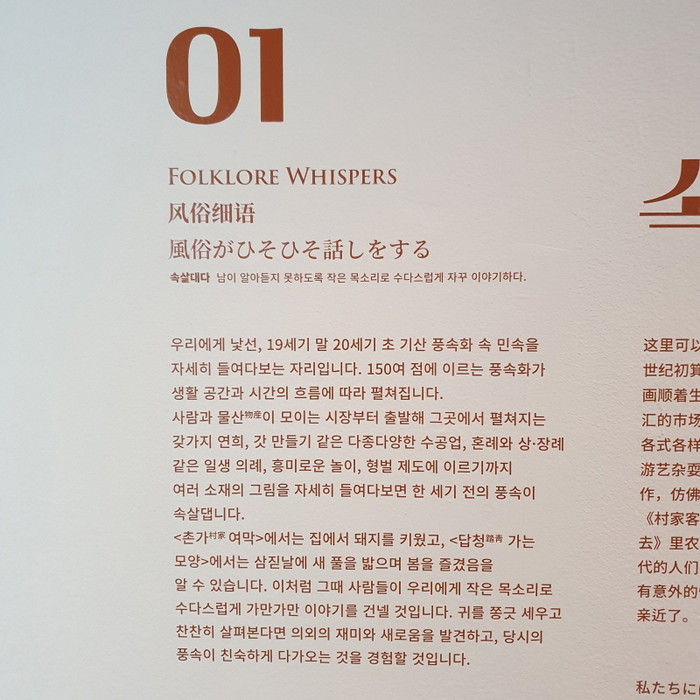 신앙, 기생, 상장례, 형벌 차례로 전시는 이어진다. 같은 하늘 아래 있어도 속세를 떠나고자 했던 이들과 속세를 꼭 껴안고 놓지 않았던 이들이 공존했다. 인간은 본능 아래 움직여왔다. 욕구에 순응하며, 때론 욕구를 부정하며, 존재를 규정하기 위해. 그 시대에 풀리지 못했던 마음들은 모두 어디로 갔을까. 궁금해진다.