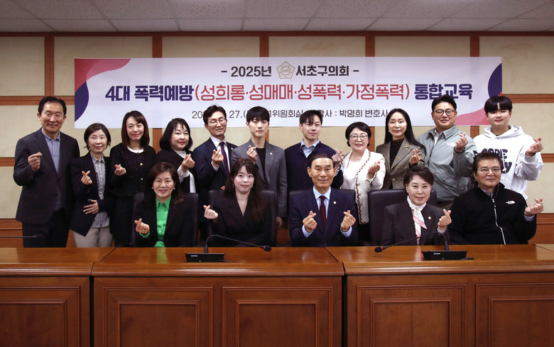 [서초구 세계타임즈=이장성 기자] 서초구의회(의장 고선재)는 27일, 제1위원회실에서 의원을 대상으로 성희롱·성매매·성폭력·가정폭력 예방 통합교육을 실시했다.