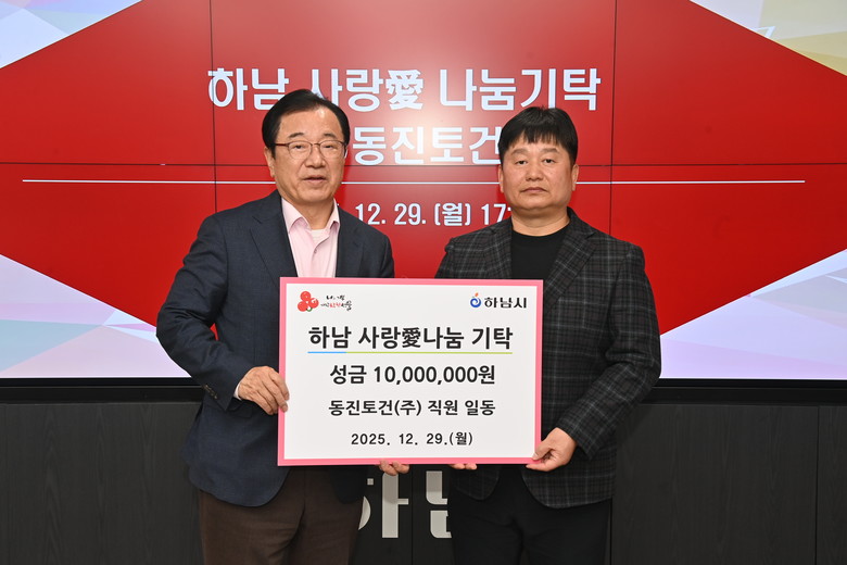 하남시 관계자는 “지역의 미래를 위한 뜻깊은 나눔에 동참해주신 ㈜동진토건에 감사드리며, 기탁자의 뜻에 따라 성금은 도움이 필요한 아동.청소년에게 소중히 전달하겠다”고 감사 인사를 전했다.