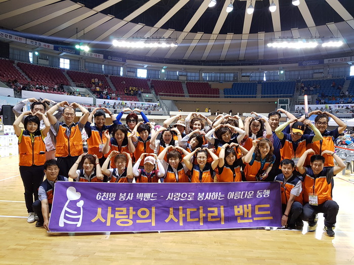 이날 행사에서 사랑의 사다리 밴드 90명 회원들은 즉석빵 천개 봉사, 교통 및 행사 안내봉사, 축하공연 봉사를 하였다.