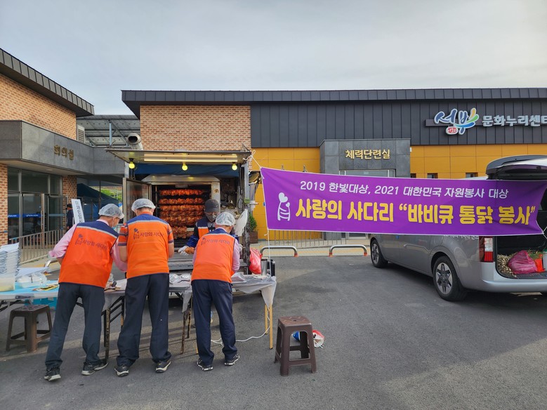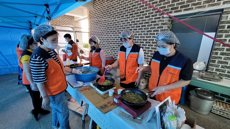 이날 봉사에는 신상일 단장, 유희자 단장을 비롯한 자원봉사자 10명이 충남 홍성 서부문화누리센터에 위치한 이재민 대피소에서 오후 5시30분 저녁 식사시간에 바비큐 통닭 50마리, 묵무침, 부침개, 미용봉사로 한순간에 삶의 터전을 잃은 이재민들을 위로하였다.