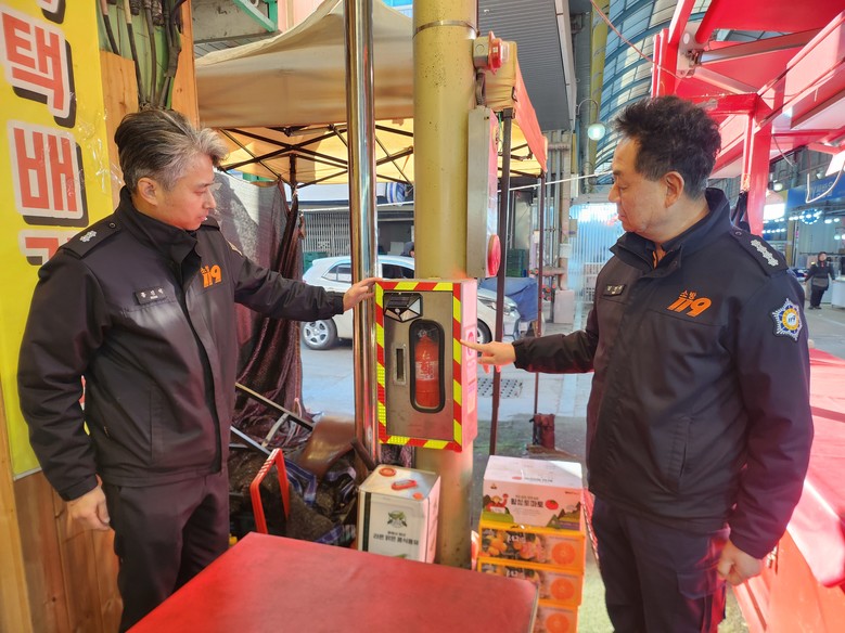 또 관계자·상인들 화재 예방 대책을 논의한 뒤 전통시장 내 공용소화기함에 태양열 센서등과 반사띠를 부착해 야간 식별성을 개선했다.