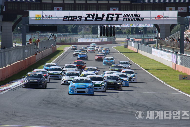 [세계타임즈=방춘재 기자] 9월 23일(토)부터 양일간 전라남도 영암의 코리아 인터내셔널 서킷(Korea International Circuit, 이하 KIC, 5.615km)에서 펼쳐진 국내 최대 모터스포츠 축제 ‘2023 전남GT’에서는 5개 클래스, 총 100여 대의 레이스 차량이 출전해 경기장을 찾은 수 많은 관람객 앞에서 치열한 경합을 벌였다.