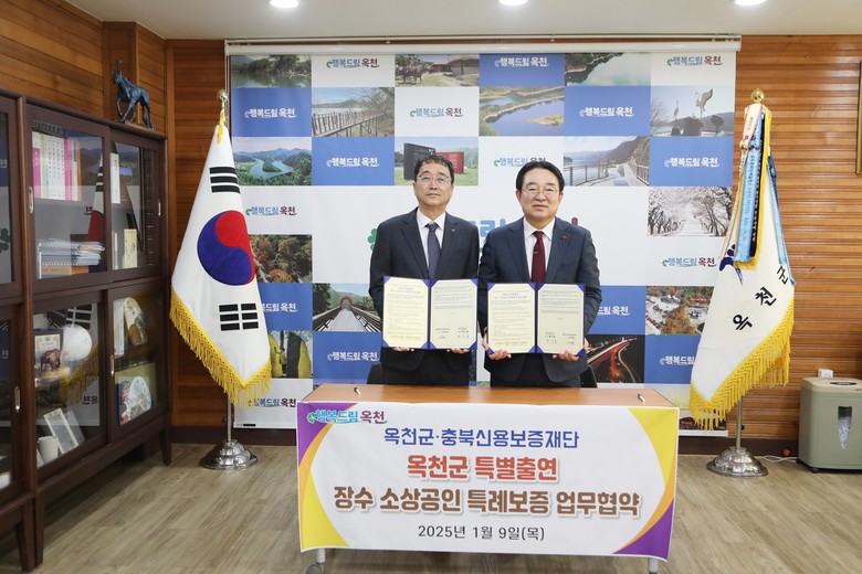 - 장수 소상공인에게 5천만원 한도, 전액보증 지원 [세계타임즈=옥천군 이현진 기자] 옥천군은 장수 소상공인의 원활한 자금운용을 지원하고자 충북신용보증재단과 특례 보증 업무협약을 체결했다고 9일 밝혔다.