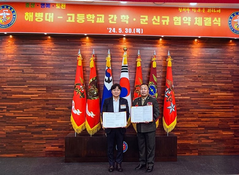 [광명시 세계타임즈=송민수 기자] 광명 통합형 공립 특성화고인 창의경영고등학교는 5월 30일 해병대와 ‘고등학교-해병대 간 학·군 미래 인재 양성을 위한 업무 협약’을 체결했다. 이번 해병대 부사관 협약식은 해병대사령부에서 전국 17개 시도의 15개교와 장군 참모와 해병대 사령관이 모인 자리에서 이루어졌다.