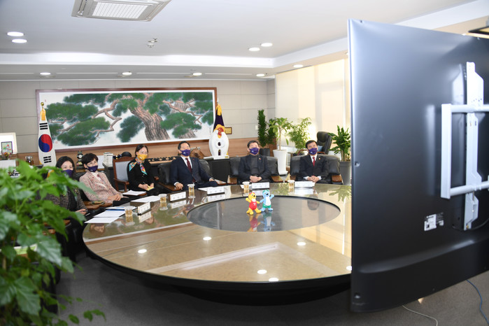 영상회의는 김용집 의장과 스치주 주임의 인사말씀과 양 도시 간 의회소개, 2021년 업무추진계획 공유 등의 순으로 진행됐다.