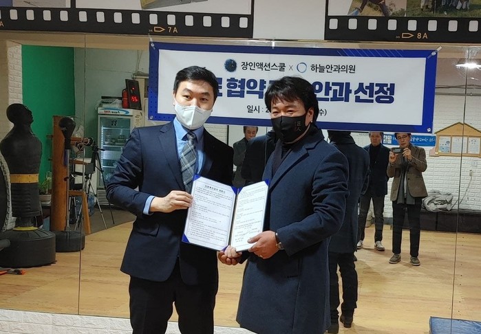 [세계타임즈 백진욱 기자] 지난 19일 장인 액션스쿨이 하늘안과의원과 의료 서비스 지원 협약을 체결했다.
