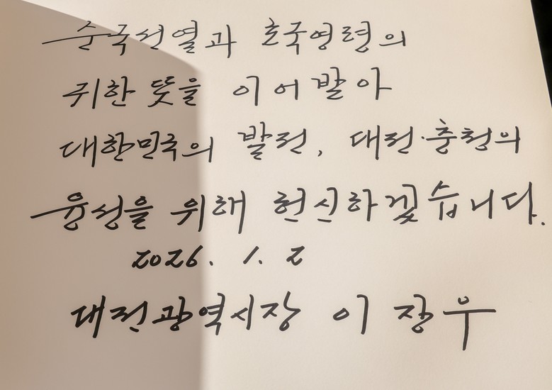 이 시장은 헌화와 분향을 통해 순국선열과 호국영령의 고귀한 희생과 헌신을 기리며, 시민과 함께하는 대전의 힘찬 도약을 다짐했다.