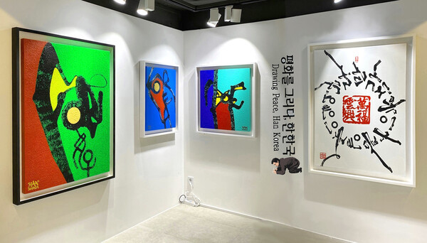 또한, 1993년부터 30여 년간 지구촌 곳곳에 평화의 메시지를 전하기 위해 한글(문자)‧평화‧행복‧환경을 주제로 한 메시지를 문자 캐릭터로 디자인해 서예회화, 현대미술, 디지털아트, 조형물 작품 등 한글 서예, 문자, 미술, 지도, 측량을 융합한 한한국 작가만의 독자적인 회화작품 총 33점을 엄선해 전시한다.