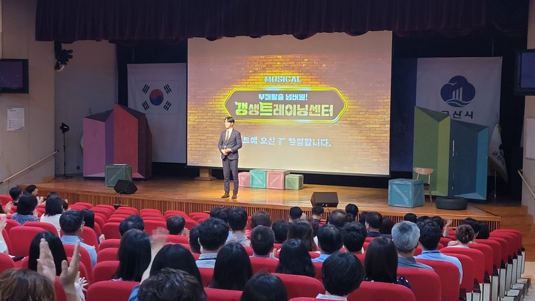 [군산시=세계타임즈 이영임 기자] 군산시가 전 직원을 대상으로 18일 대강당에서 청렴교육 뮤지컬 공연 ‘갱트’를 개최했다.