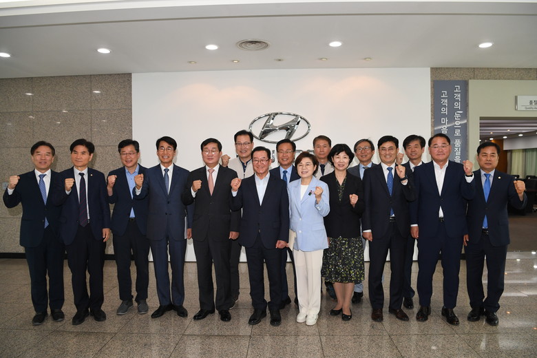 의원들은 현대자동차 전주공장에 도착, 수소차 시승을 한 후 유희태 완주군수와 수소융합얼라이언스 관계자, 현대자동차 임원들과 간담회를 진행하고 수소상용차 생산라인을 둘러봤다.