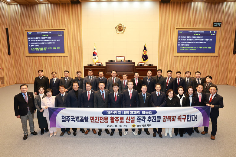 안건으로는 ‘충청북도 마을돌봄 지원 조례안’ 등 조례안 6건을 비롯해 ‘2025년도 제3회 충청북도 추가경정예산안’ 등 예산안 4건, ‘충청북도 창업펀드 출자계획안’ 등 동의안 12건, ‘국립소방병원 개원철저, 의료인력 확보를 위한 국가주도의 책임있는 대책 마련 건의안’ 등 건의안 3건을 처리했다. 채택된 건의문은 국회 및 관련 정부 부처에 이송될 예정이다.