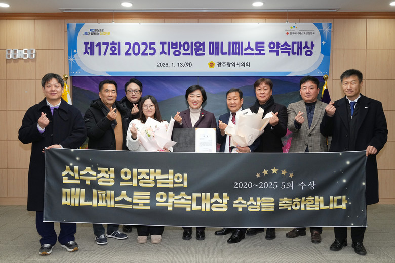 이번 수상으로 신수정 의원은 광역지방의원 매니페스토 약속대상 5관왕을 달성하며, 공약 이행과 입법 성과 전반에서 지속적인 성과를 인정받았다.