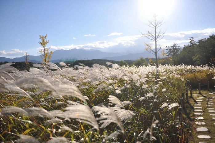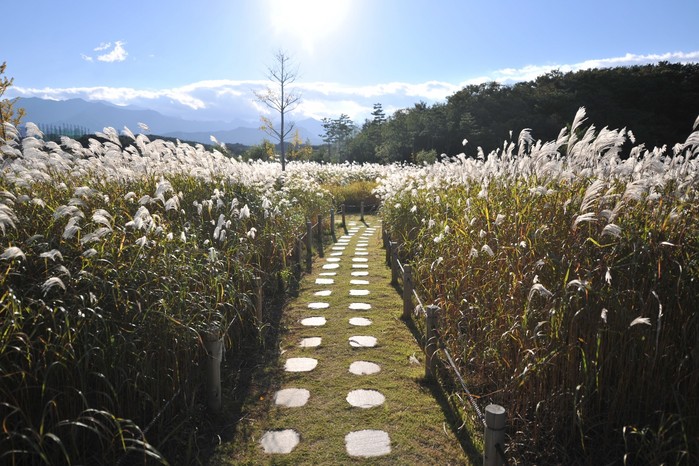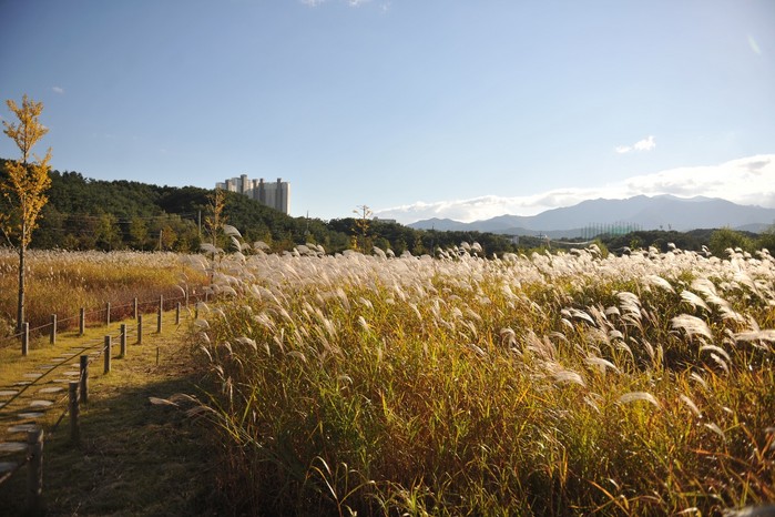 특히, 해질녘엔 하늘을 붉게 물들이는 석양과 억새풀이 만들어내는 은빛 물결의 풍광은 자연이 만들어내는 한 폭의 그림 속에 들어온 듯 한 느낌을 받을 수 있다.