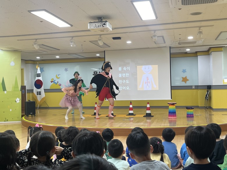 공연은 피터팬과 후크 선장, 팅커벨이 등장하며 시작되었다. 유아들은 ‘쑥쑥 체조’로 몸을 풀며 공연에 적극적으로 참여하였고, 이어지는 상황극에서는 ‘몸 속이 아파요’에 대해 알아보고, 장애가 있는 친구들과 더 잘 지내는 방법에 대해 생각해 보는 시간을 가졌다. 이어 세종대왕이 등장해 시각장애에 대한 설명과 함께 시각장애인과 관련된 업적을 소개하며 아이들의 이해를 도왔다. 뒤이어 베토벤이 등장하는 청각장애 상황극이 이어졌고, 베토벤의 음악적 업적과 청각장애를 가진 사람들의 삶에 대해 함께 알아보았다.