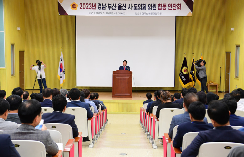 [경남 세계타임즈=최성룡 기자] 경상남도의회(의장 김진부)는 5월 30일(화)~31일(수) 산청선비문화연구원에서 경남·부산·울산 의원들이 한자리에 모여 공동현안 협치를 위한 소통과 화합을 다짐하는 합동연찬회를 실시했다고 밝혔다.