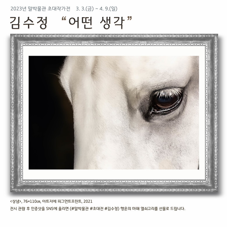 대한승마협회 공식작가로 활동 중인 김수정 작가는 이번 말박물관 초대전을 통해 말의 감정을 엿볼 수 있는 사진작품 16점을 최초로 선보인다.