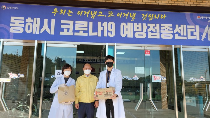 [동해시=세계타임즈 김민석 기자] 동해시의회(의장 김기하)는 25일(월) 관내 예방접종센터와 보건소를 찾아 위문품을 전달하며 방역의 최일선에서 장기간 고생하고 있는 의료진 및 직원들을 격려했다.
