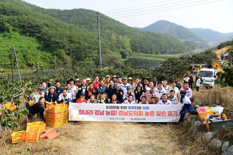 [경남 세계타임즈=최성룡 기자] 경상남도의회(의장 김진부)는 17일 가을철 작물 수확기를 맞이하여 농촌인구 감소와 고령화 등으로 인력수급이 어려운 농가를 방문해 농촌일손돕기 활동을 펼쳤다.