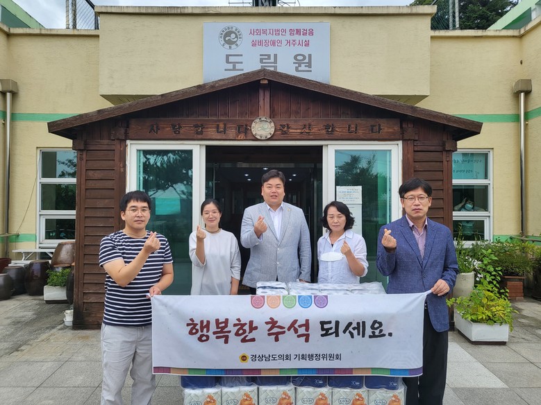 -자매결연 독립유공자 유족 위문… 따뜻한 나눔 문화 및 예우 실천 [경남 세계타임즈=최성룡 기자] 경남도의회 기획행정위원회(위원장 박준)는 추석 명절을 맞아 9월 5일부터 7일까지 창원 안정요양원, 김해 장애인복지시설 도림원, 창녕군장애인종합복지관, 독립유공자 이쾌경 유족 등 4개소를 방문하여 위문품을 전달하고 고마움의 마음을 전했다고 밝혔다.