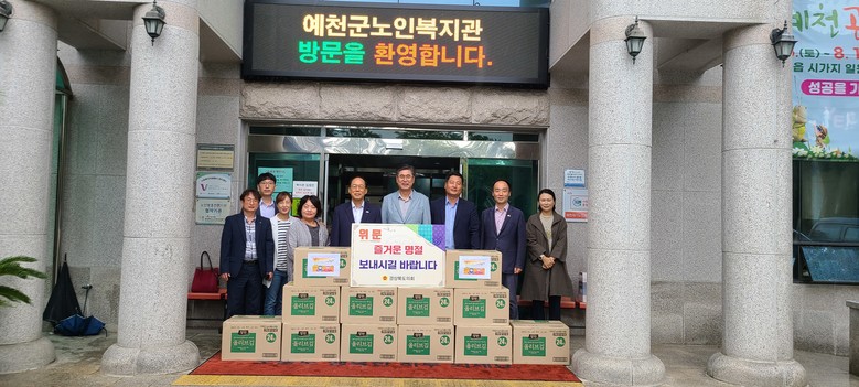 [경북 세계타임즈=한성국 기자] 경상북도의회 도기욱 의원과 이형식 의원은 2022년 추석 명절을 앞두고 8월 30일(화) 예천읍에 소재한 예천재가노인통합지원센터와 풍양면에 소재한 연꽃마을을 찾아 경상북도의회를 대표해 도의회에서 준비한 위문품을 전달하고 관계자들을 격려했다.