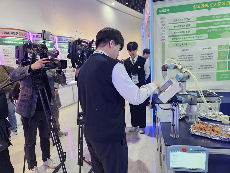 AI 붕어봇을 개발한 아산스마트팩토리마이스터고 2학년 백경훈학생과 김민서학생은 “수업시간에 배운 디지털 동작 전자장치(Programmable Logic Controller)와 로봇 운영을 접목하여 평상시 먹고 싶었던 붕어빵을 개발하였고 이번 특별전에 참여하여 많은 사람들에게 붕어빵을 나누어줄 수 있어서 매우 좋았다”라고 소감을 이야기 하였다.