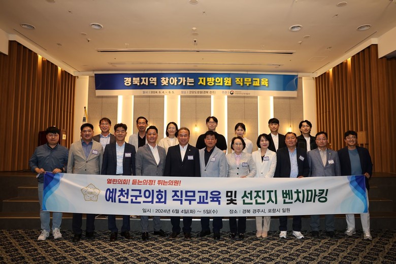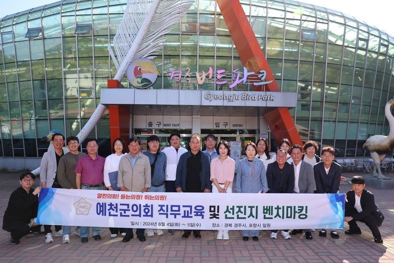 [예천군 세계타임즈=한윤석 기자] 예천군의회는 지난 4일부터 5일까지 2일간 경주시와 포항시 일원에서 의원과 직원 20명이 참여한 가운데 지방의회 직무교육 및 선진지 벤치마킹을 실시했다.