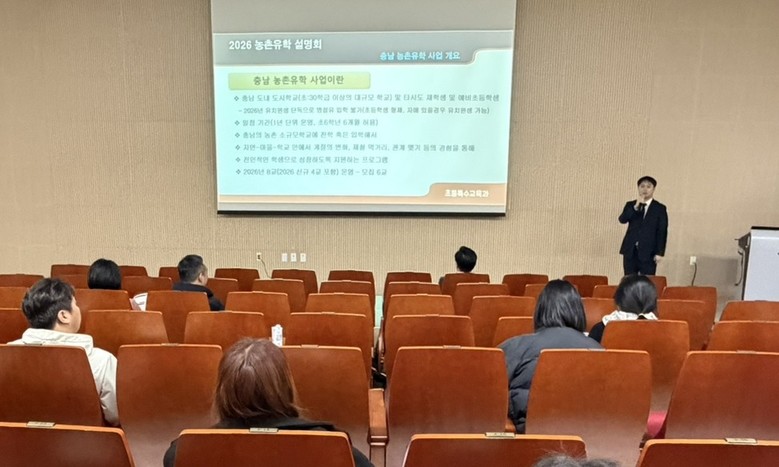 [충남 세계타임즈=이현진 기자] 충남교육청(교육감 김지철)은 26일(수), 충남교육청과학교육원(아산)에서 농촌유학에 관심있는 학부모를 대상으로 ‘2026 충남 농촌유학 학부모 설명회’를 개최했다.