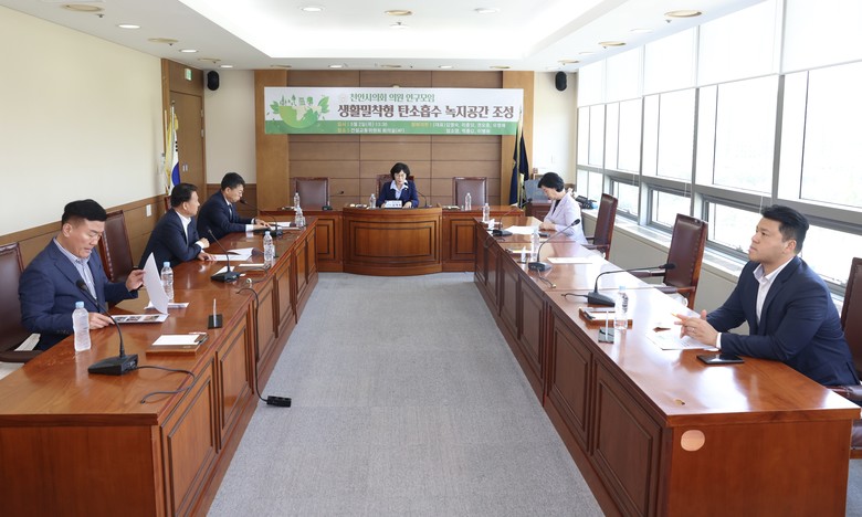 [천안시 세계타임즈=백택기 기자] 천안시의회 「생활밀착형 탄소흡수 녹지공간 조성을 위한 연구모임(김명숙(대표의원), 이종담, 권오중, 유영채, 엄소영, 박종갑, 이병하)」 은 2일 건설교통위원회 회의실에서 1차 간담회를 개최하고 본격적인 활동의 시작을 알렸다.