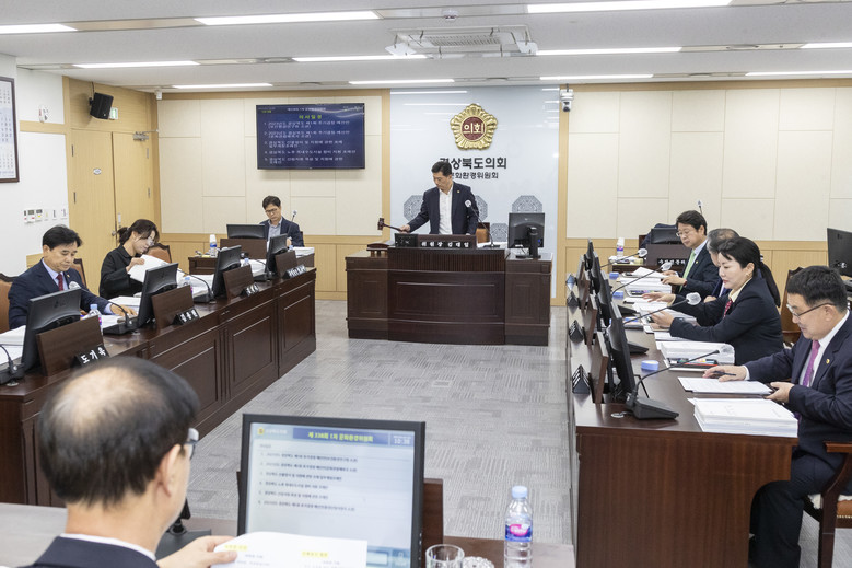[경북 세계타임즈=한성국 기자] 경상북도의회 문화환경위원회(위원장 김대일)는 3월 10일 제338회 임시회 기간에 제1차 문화환경위원회를 열어 문화관광체육국, 환경산림자원국, 보건환경연구원 소관 ‘2023년도 경상북도 제1회 추가경정예산안’과 박규탁 의원(비례)이 대표 발의한 ‘경상북도 산불방지 및 지원에 관한 조례 일부개정조례안’ 등 3건의 조례를 심사했다.