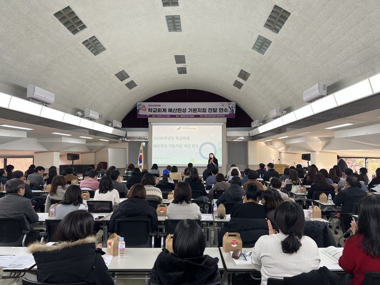 [파주시 세계타임즈=송민수 기자] 경기도파주교육지원청(교육장 전선아)은 12월 9일 홍원연수원에서 관내 예산업무 담당자를 대상으로 “2026학년도 학교회계 예산편성 기본지침 전달연수”를 실시했다.