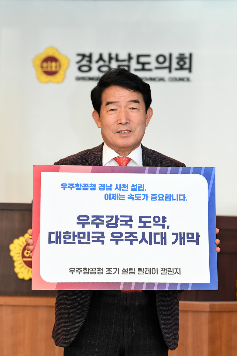 [경남 세계타임즈=최성룡 기자] 경남도의회 경제환경위원회 진상락 의원이 ‘우주항공청 조기 설립’을 위한 챌린지에 동참했다고 16일 밝혔다.