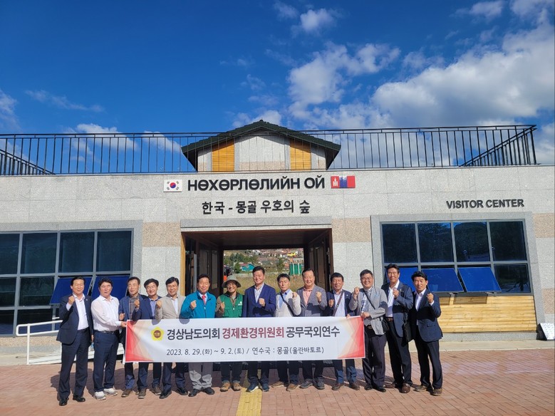 [경남 세계타임즈=최성룡 기자] 경상남도의회 경제환경위원회(위원장 김일수)는 몽골 국외연수 공식 일정 이틀째를 맞아 오전에는 울란바토르 도시 숲 조성 현장과 한-몽 그린벨트 사업단을 방문하고 오후에는 환경관광부를 방문하는 바쁜 일정을 소화했다.