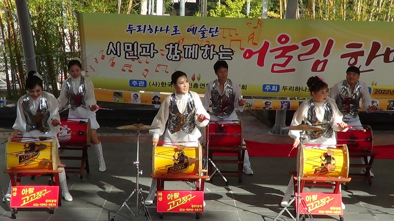 [세계타임즈] 최성룡 기자 = 창원시민과 함께하는 어울림 한마당 공연이 10월 22일(토) 오후 2시 첫 무대를 아랑 고고 장구와 딱풀예술단(원장 곽다혜) 단원들이 내서읍 삼께 근린공원 특설무대에서 신명 나는 장구춤 한마당 공연이 펼쳐졌다.