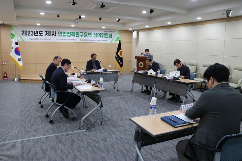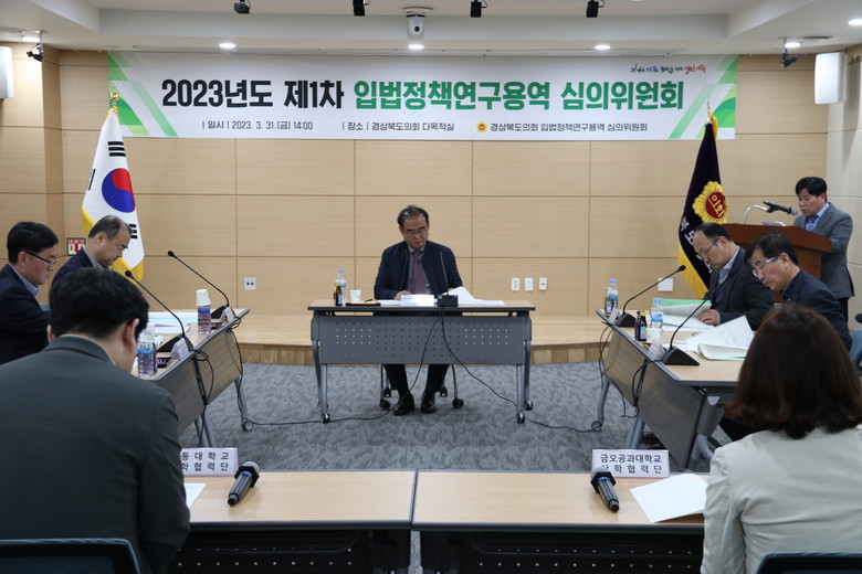 [경북 세계타임즈=한성국 기자] 경상북도의회는 3월 31일(금) 의회 다목적실에서 2023년도 제1차 「입법정책 연구용역 심의위원회」를 개최하여, 각 연구단체로부터 제안된 2건의 연구과제에 대해 심도 있게 검토했다.