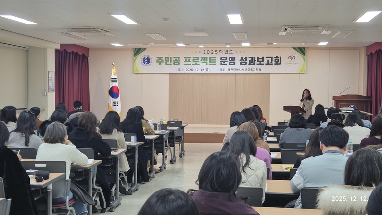 [대전 세계타임즈=이채봉 기자] 대전서부교육지원청은 12월 12일 본관 대회의실에서 서부 관내 초등학교 「주인공 프로젝트」업무담당자 및 지원단, 「주인공 프로젝트 우수사례 공모전」입상자 85명을 대상으로 성과보고회를 개최했다.
