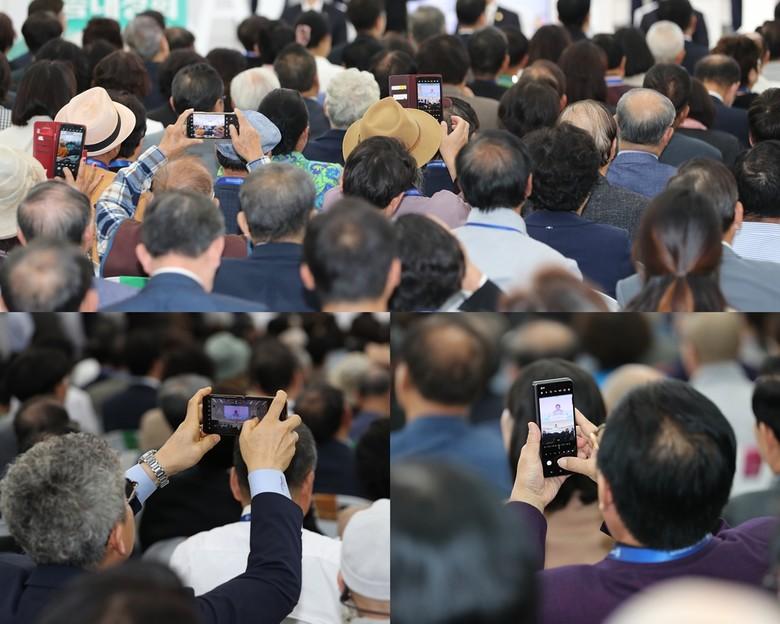 ▲‘2024 신천지 계시 성취 실상 증거 말씀대성회’가 5일 서울 영등포에서 열린 가운데 참석한 목회자들이 촬영하는 모습 [사진 제공 = 신천지예수교회]